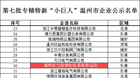 【喜報】熱烈祝賀溫州合力自動化儀表有限公司榮獲***“專精特新小巨人”企業稱號!